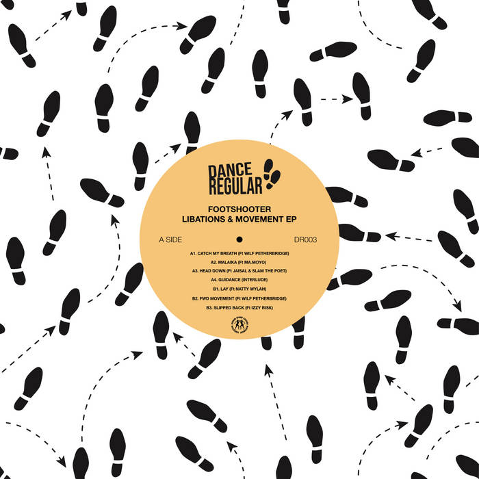 Hot off the back of his SAUL project on Rhythm Section, Dance Regular proudly present FOOTSHOOTER - Libations & Movement. This EP takes you on an epic musical journey from start to finish from the skippy broken drums, synth stabs and live trumpet by Wilf Petherbridge in the opening track ‘Catch My Breath’ into ‘MALAIKA’ which starts off with Footshooters signature drums, these a little less broken than others on the EP but still maintains that energy to keep your attention. Lush chords float over the syncopated rhythm until a mighty funky bassline drops, while MA.MAYO weaves in and out with her softly spoken words about the city, struggle, love, health and drinking too much! Vibes here are Jazz, Brokenbeat, House and Spoken word. It’s silky, smooth and laid back but bumpy enough to make your neck bop!
